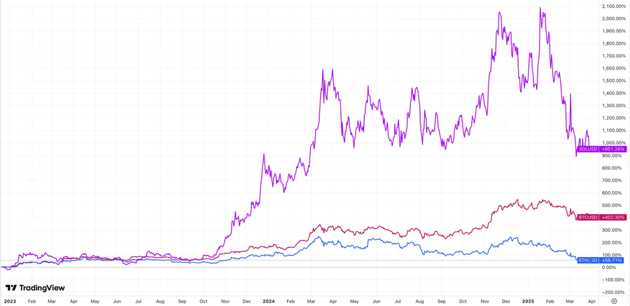 Figure 11: Relative performance of ETH, BTC & SOL