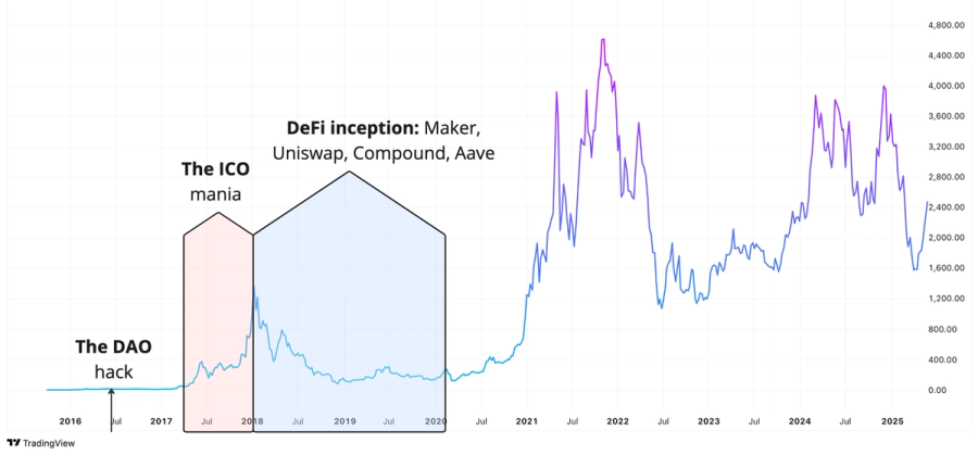 Figure 1: ETH price, major historical phases