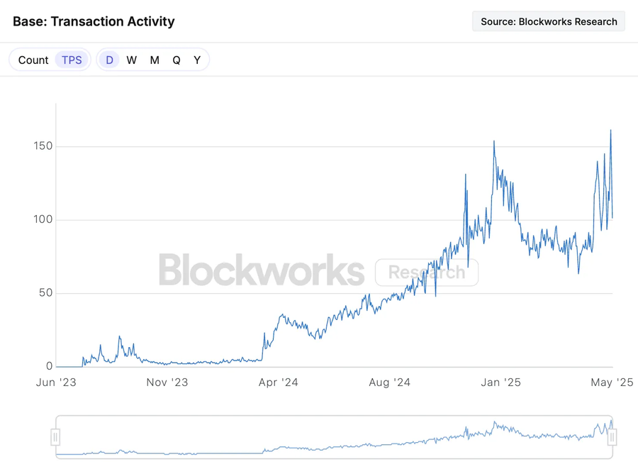 With current target 35m gas per second, Base plans to expand to 250m gas per second in 2025 (~650 TPS), and eventually reach 1b gas per second target throughout (~2500 TPS). World Chain’s TPS is growing fast as well.