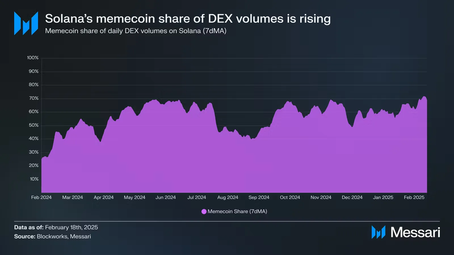 Figure 16a: Memecoin share of Solana DEX volumes