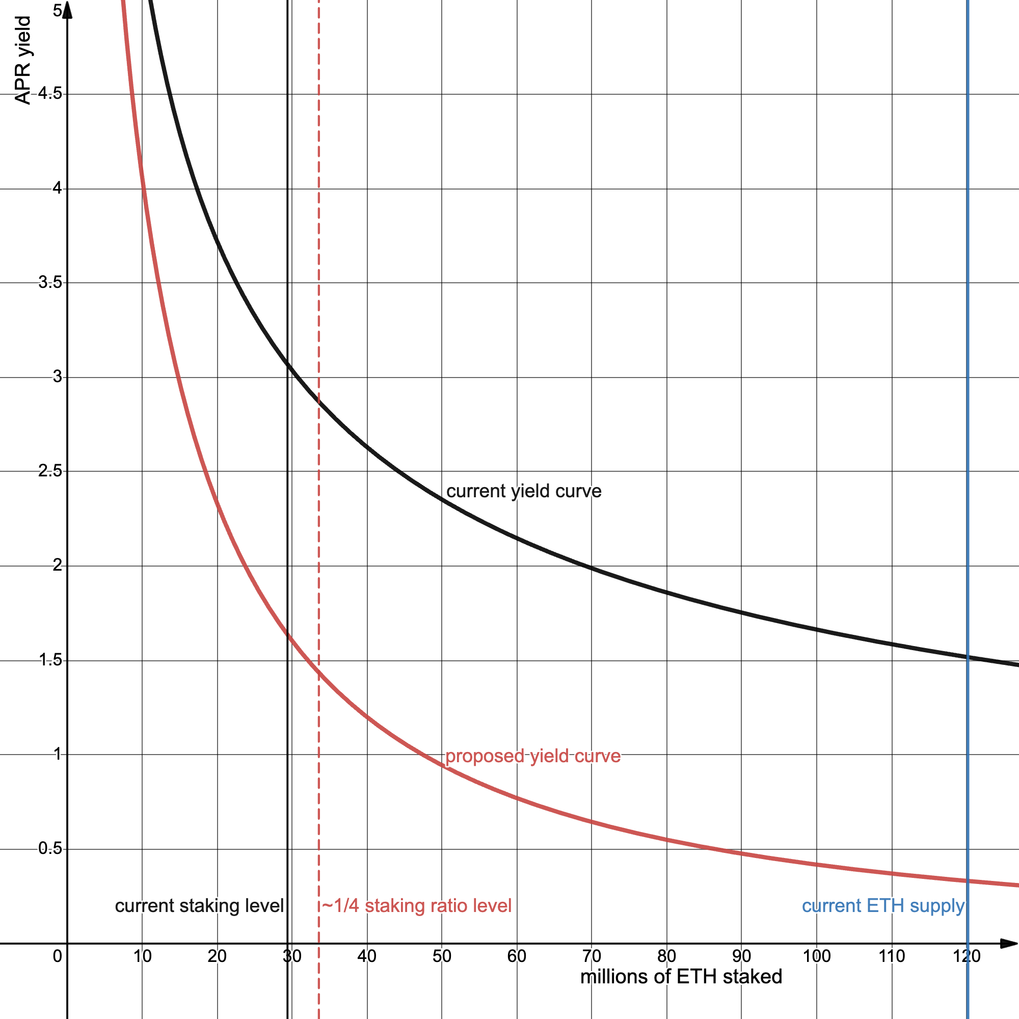 In your recent studies [1, 2] you focus on the impact the staking ratio has on economic security, consensus incentives and reward variability. In Section 5.5 you suggest an issuance yield curve with the following properties: