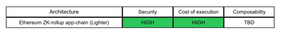 Lighter is in a great position to scale throughput like a centralized venue while rooting trust in Ethereum’s consensus, in our view the highest degree of trustlessness.