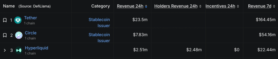 On the commercial side, Hyperliquid’s growth has been impressive and currently ranks 3rd in terms of revenues among all onchain crypto businesses.