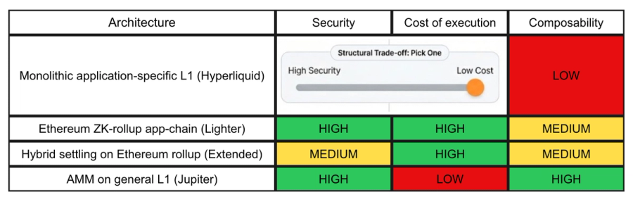 Our theoretical conclusion is simple: despite monolithic designs like Hyperliquid leading the market today, they are structurally limited to scale. The winning architecture is one that inherits the strongest security and composability from the most liquid and battle tested network, while being unconstrained to scale like a CEX.