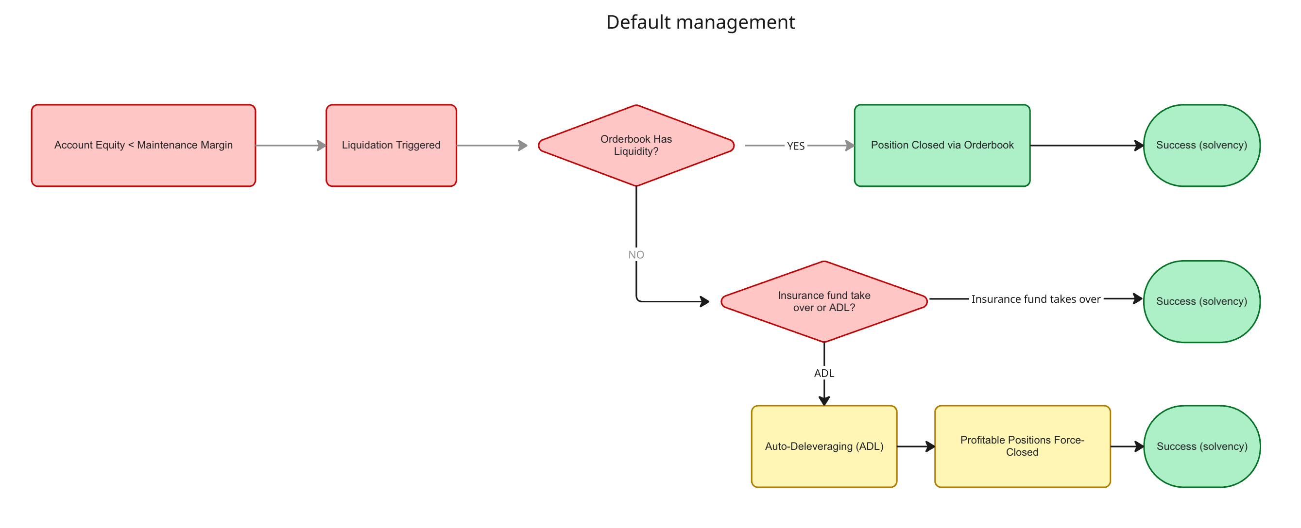 The loss absorption mechanism is crucial to ensure solvency and, by extension, withdrawability. Any account should be able to withdraw its equity at all times. Perps are synthetic and cash-settled, unlike spot markets that exchange the physical underlying. This means, a perps exchange is a zero sum set up, one trader’s gain is another trader’s loss after fees. If a gain isn’t fully covered by an offsetting loss, you end up with a hole in the system.