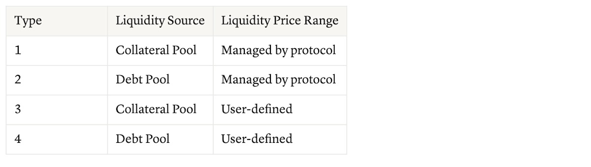DEXv2 details. Fluid DEX v2 consists of 4 distinct types, each defined by two key characteristics: